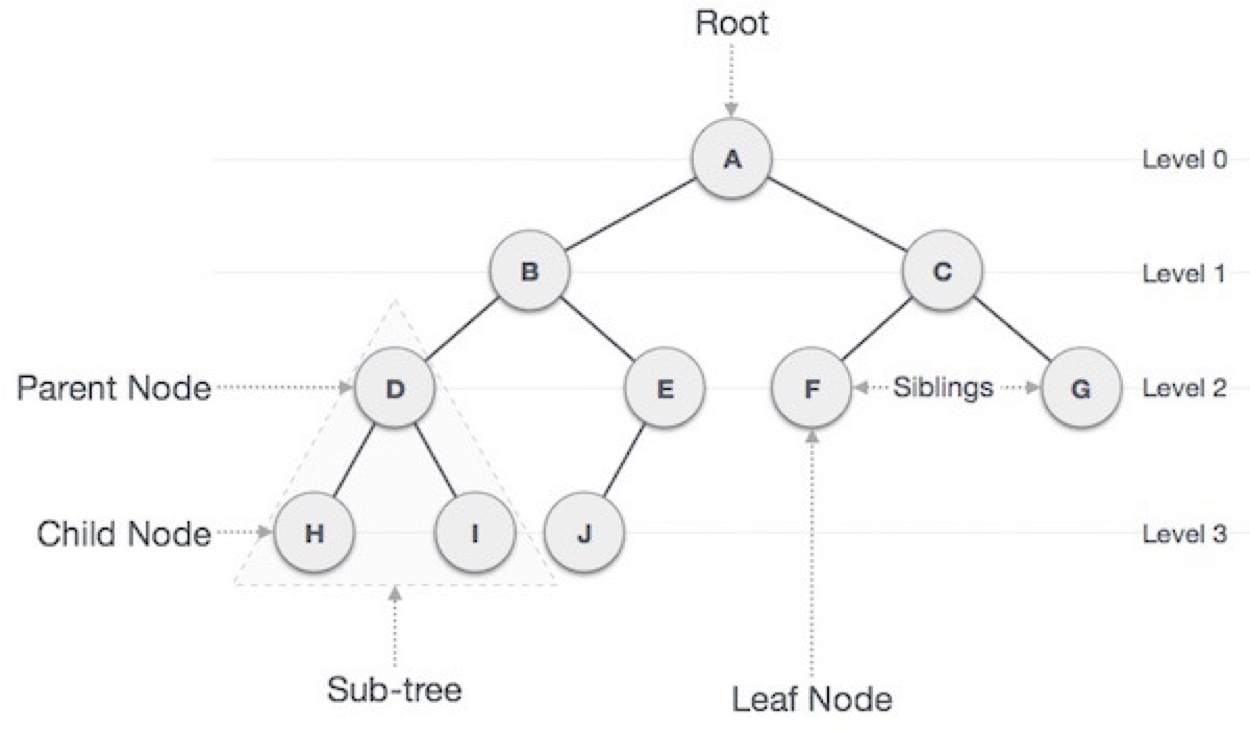 트리는 방향성이 있는 비순환 그래프의 한 종류이며 최소 연결 트리 라고도 불린다. 또한 노드와 노드들을 연결하는 간선들로 구성되어 있으며 파일의 구조, 조직도와 같은 계층적 관계를 표현하는데 적합한 자료 구조이다.