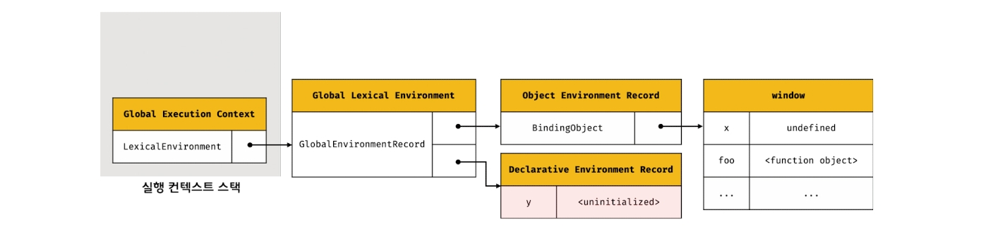 하나하나 살펴보자. 참고로 전역 렉시컬 환경은 스코프 체인의 종점에 존재하기 때문에 외부 렉시컬 환경에 대한 참조는 없다. 때문에 null이 할당된다.